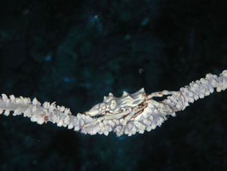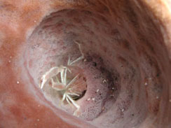 このカニの正式名称は解りませんが、偶然覗いたミズガメカイメンの中に2匹のカニが