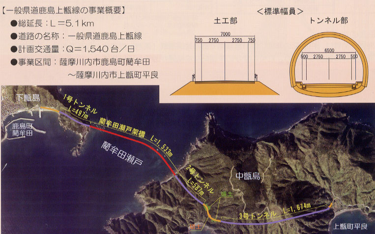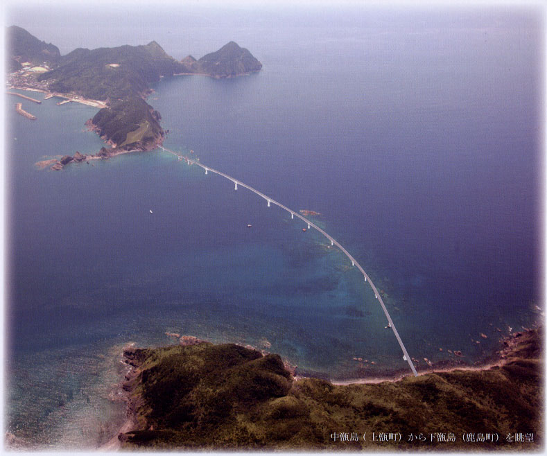 下甑島から見て2連目の橋梁(第2橋)の中央径はL=165mで、PC連続箱桁橋においては、国内最大級となります。